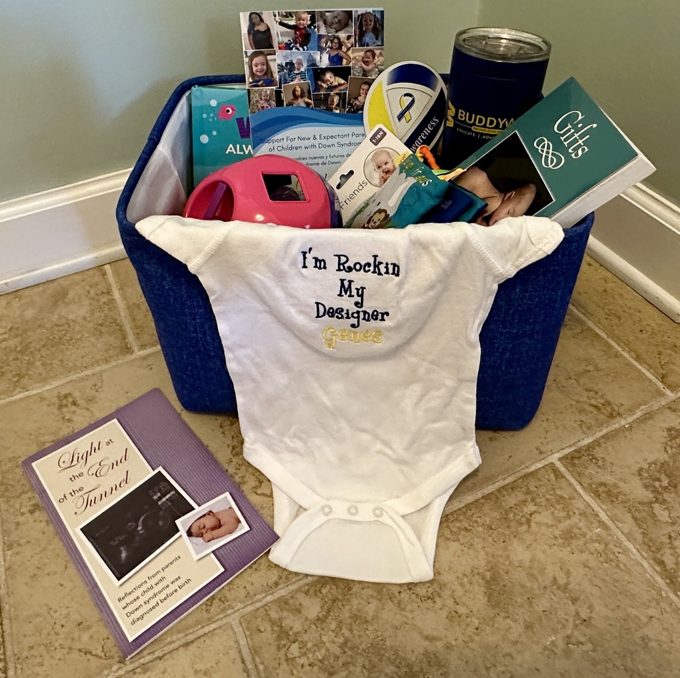 Sometimes when a baby with Down syndrome is born, the hospital staff notifies the parents that CADSS has a gift basket available to them and if the family is interested in accepting the gift basket, then the hospital contacts our organization on behalf of the family.